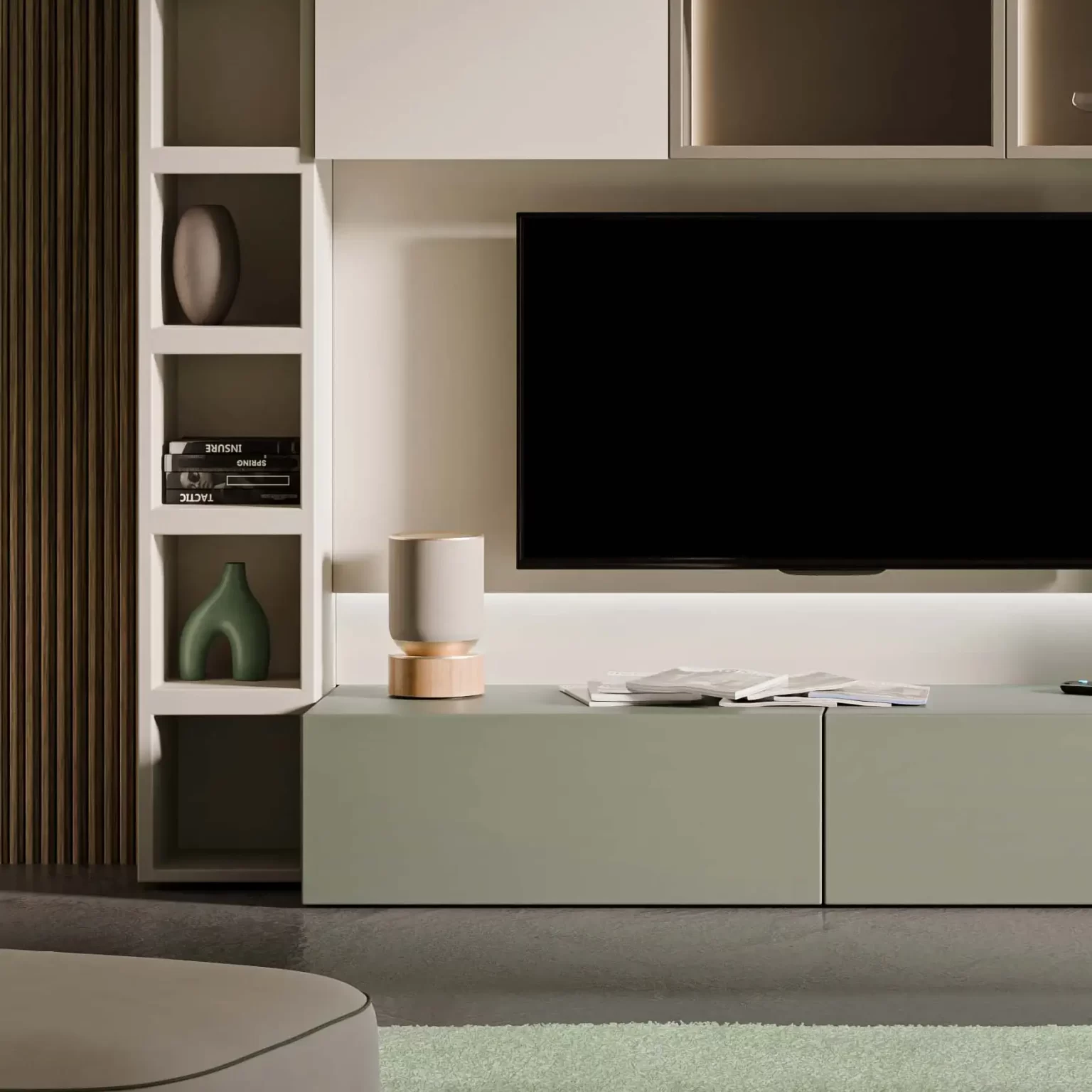 La parete Worfan garantisce un’organizzazione ottimale dello spazio, rendendo ogni dettaglio della tua area living un’espressione di stile e praticità impeccabili.