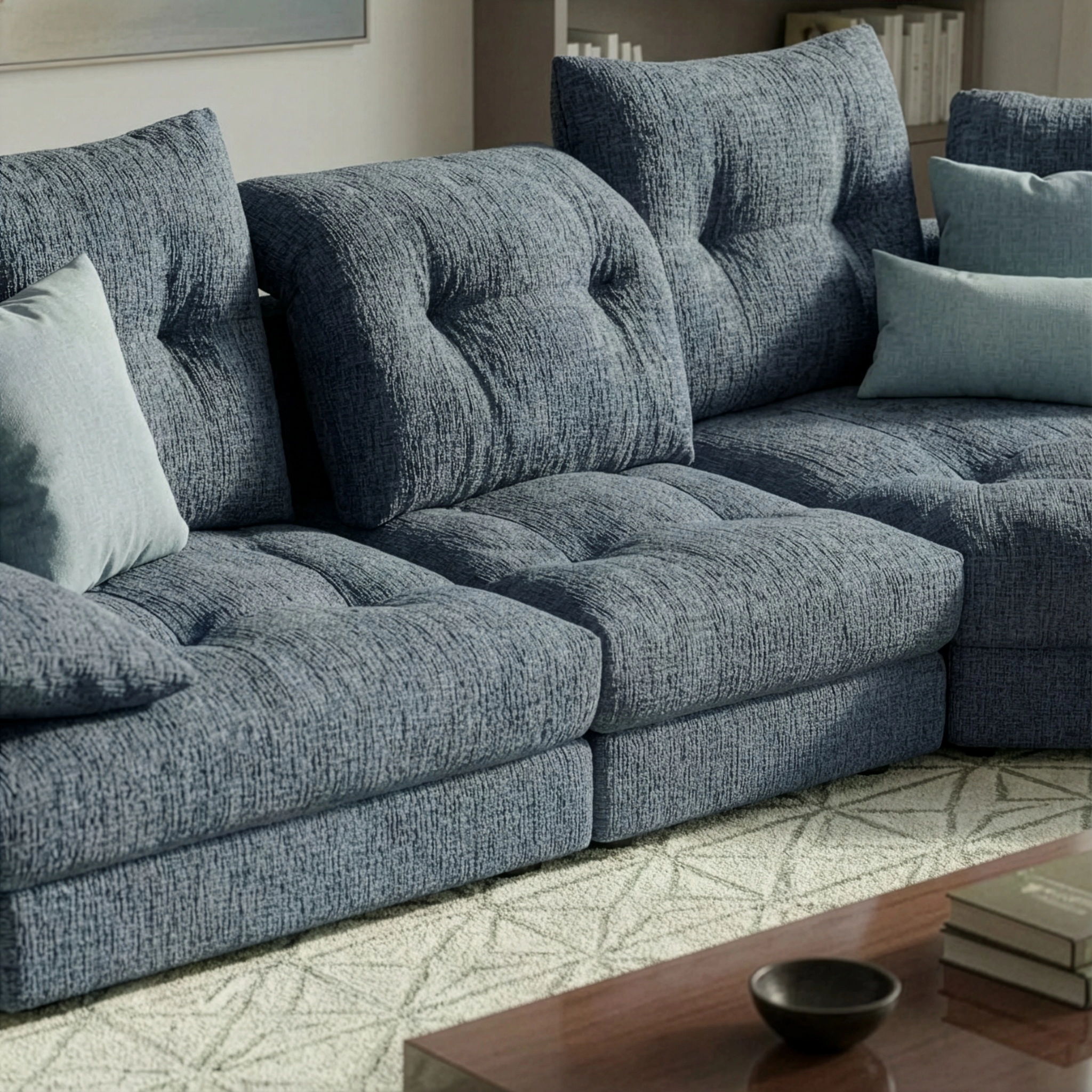La versatilità di Cloud lo rende ideale per chi cerca un divano modulare flessibile e funzionale. Grazie a un’ampia gamma di elementi componibili, è possibile realizzare soluzioni lineari, angolari o semicircolari, adattandosi a spazi di diverse dimensioni. L’elemento a trapezio aggiunge movimento e carattere al design, trasformando il divano in un vero protagonista del living.