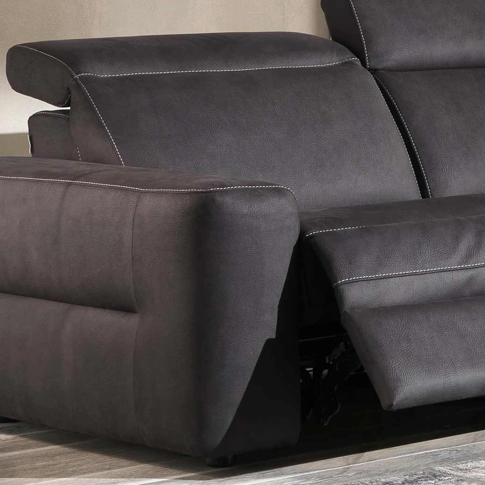 Divano componibile con meccanismo relax elettrico a movimento combinato per sedute e schienali sincronizzati. Poggiatesta regolabili indipendenti. Imbottiture in poliuretano espanso morbido e confortevole. Versioni due o tre posti, con chaise longue o elementi angolari. Disponibile in pelle, tessuto o microfibra. Design essenziale contemporaneo adattabile ad ogni ambiente.