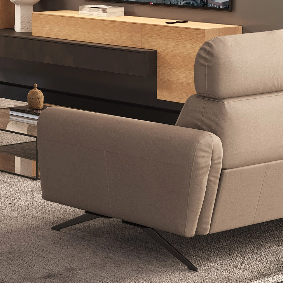 Il divano Ginevra offre un’ampia componibilità, permettendo di creare composizioni lineari, angolari o modulari seguendo le proporzioni e lo stile dell’ambiente. Il tavolino coordinato sagomato a spicchio aggiunge funzionalità e versatilità, permettendo di realizzare soluzioni dinamiche e personalizzate. La combinazione di comfort avanzato con doppio meccanismo elettrico, il design raffinato e la modularità rende Ginevra il divano ideale per chi desidera stile, praticità e relax su misura, trasformando ogni soggiorno in un ambiente elegante e accogliente. Realizzabile in pelle, tessuto o microfibra, in un’ampia gamma di colori e finiture.