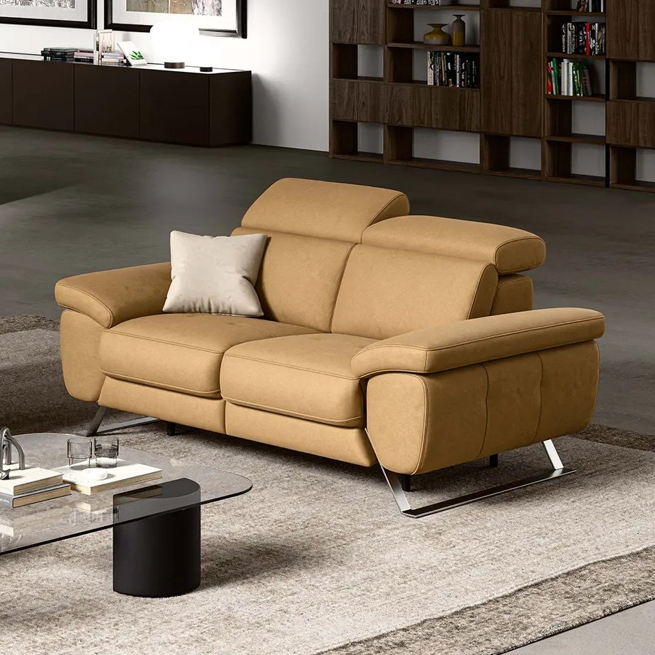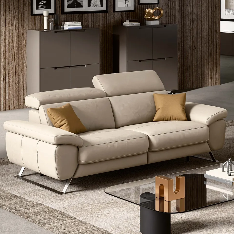 Divano relax elettrico con movimento motorizzato e poggiatesta reclinabili. Design moderno con linee contemporanee e piedino in metallo cromato o nero. Disponibile in pelle, tessuto o microfibra. Componibile in versioni lineari e angolari. Comfort ergonomico Made in Italy per living moderni e classici.